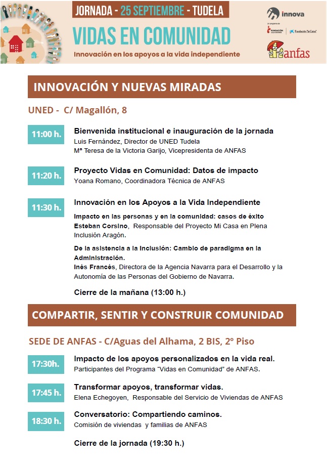 El próximo 25 de septiembre, la UNED de Tudela junto a ANFAS acogerá la jornada “Vidas en Comunidad”, dentro del programa Innova Social financiado por Fundación Caja Navarra y Fundación La Caixa. La cita reunirá a profesionales, familias y personas interesadas en la innovación de los apoyos para la vida independiente de las personas con […]
