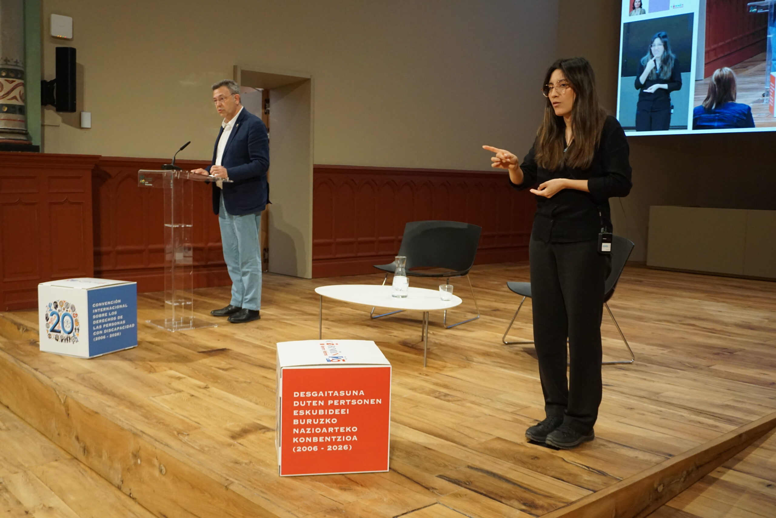 El acto ha contado con medidas de accesibilidad con intérprete de Lengua de Signos y subtítulo en directo. Este evento se enmarca dentro del proyecto de sensibilización e incidencia de CERMIN financiado por el Departamento de Derechos Sociales, Economía Social y Empleo del Gobierno de Navarra y Caja Rural Acción Social