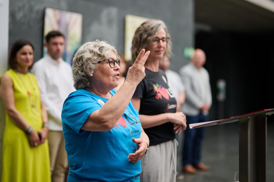 A continuación, Franscisca Pulgarín, secretaria de la Asociación de Personas Sordas de Navarra (ASORNA), y Sofía de Esteban, Coordinadora de Proyectos de dicha entidad, han dado lectura al manifiesto que la Confederación Estatal de Personas Sordas, bajo el título ‘Las lenguas de signos nos hacen más fuertes’, ha elaborado con motivo de la celebración de este año.